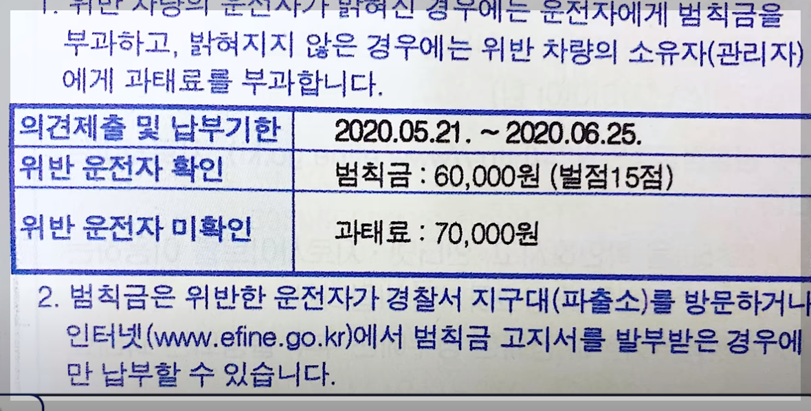 이 경우 가격이 더 저렴하다는 이유로 범칙금으로 납부하시면 절대 안 됩니다.