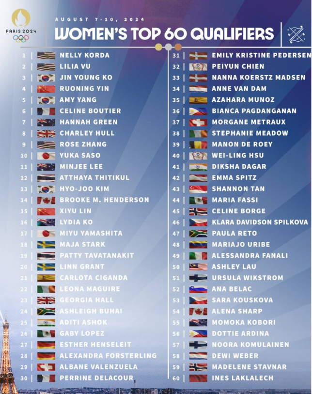 6월 25일에는 KPMG 챔피언십까지 반영된 세계랭킹이 발표되었는데요. 이 랭킹에 따라 파리 올림픽 출건 선수가 정해졌습니다. 우리나라는 미국과 함께 최다 인원인 3명의 선수가 올림픽에 출전할 수 있게 되었습니다. 이 글에서는 선수들의 인스타와 골프 일정에 대해 알아보겠습니다.