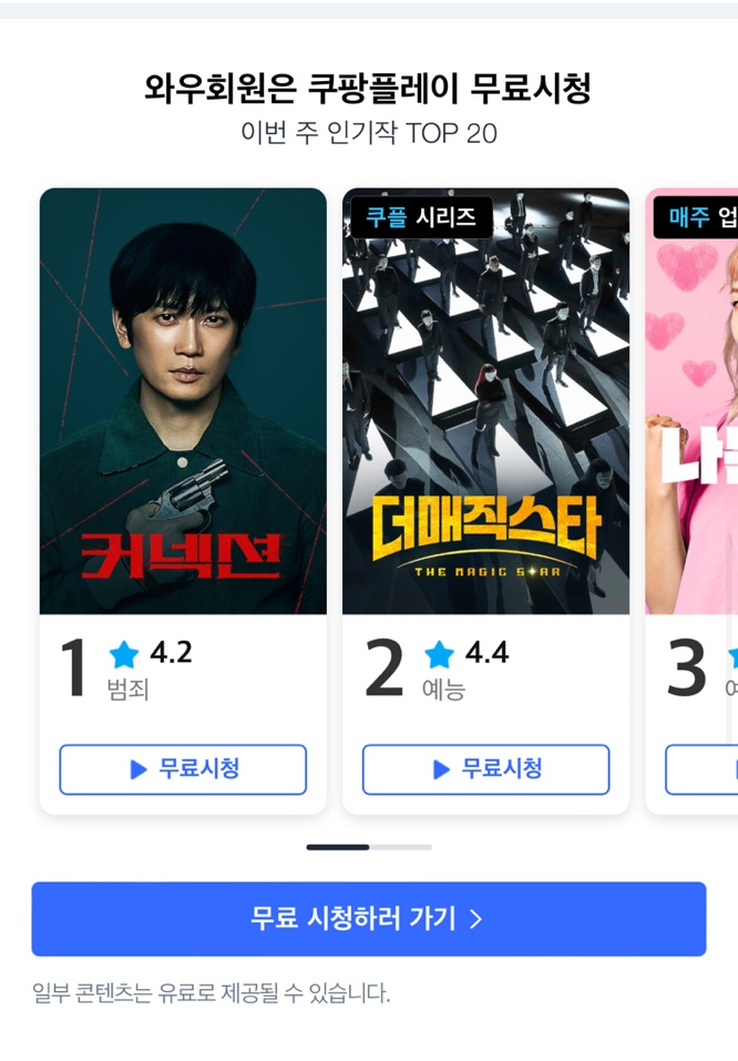 최초 회원가입한 경우 쿠팡플레이를 30일 무료 이용할 수 있습니다.(광고 아님)