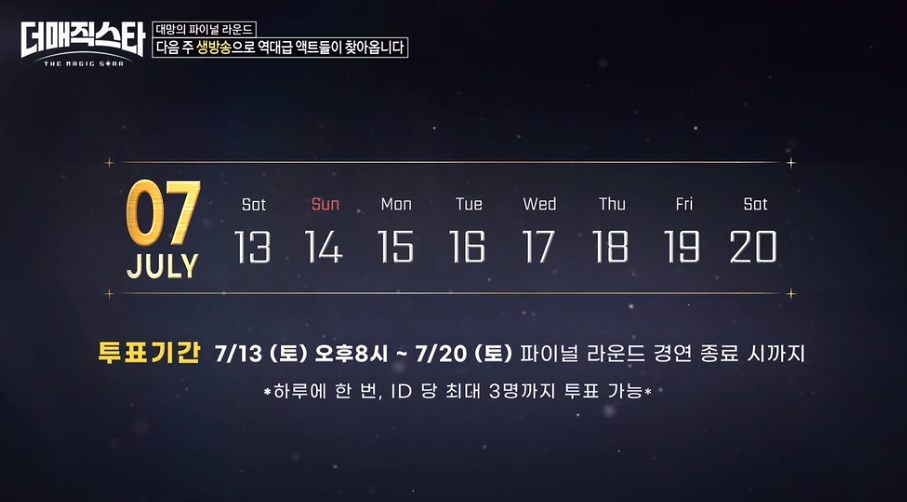 ☑ 투표기간 7/13 (토) 오후 8시 ~ 7/20 (토) 파이널 라운드 경연 종료 시까지