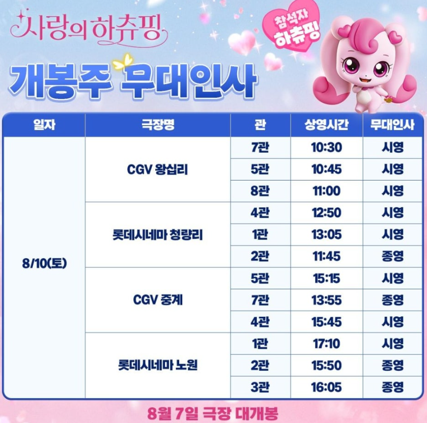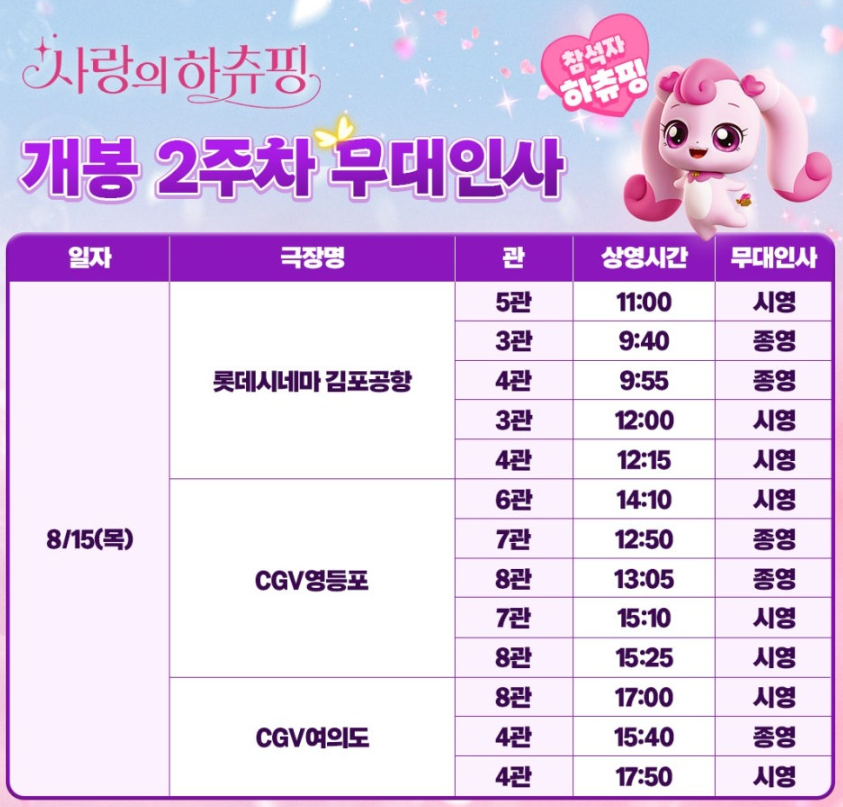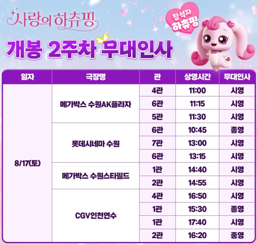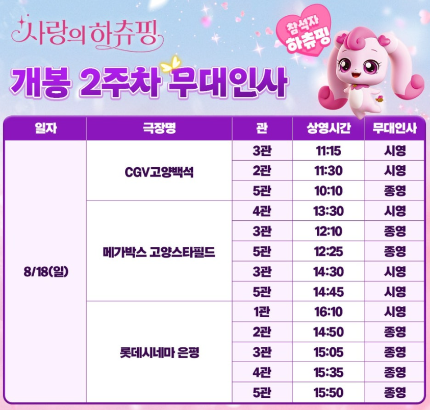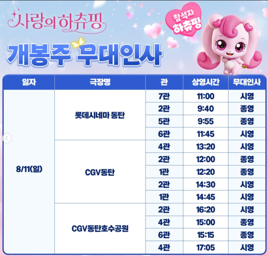 사랑의 하츄핑 영화 무대인사 일정 총정리