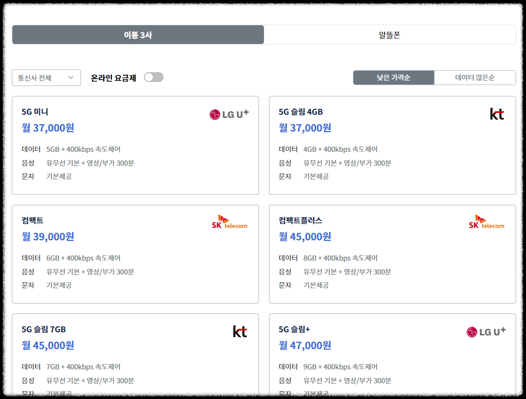 - 시간 절약: 다양한 요금제를 한눈에 비교할 수 있어 빠르고 쉽게 나에게 맞는 요금제를 찾을 수 있습니다.