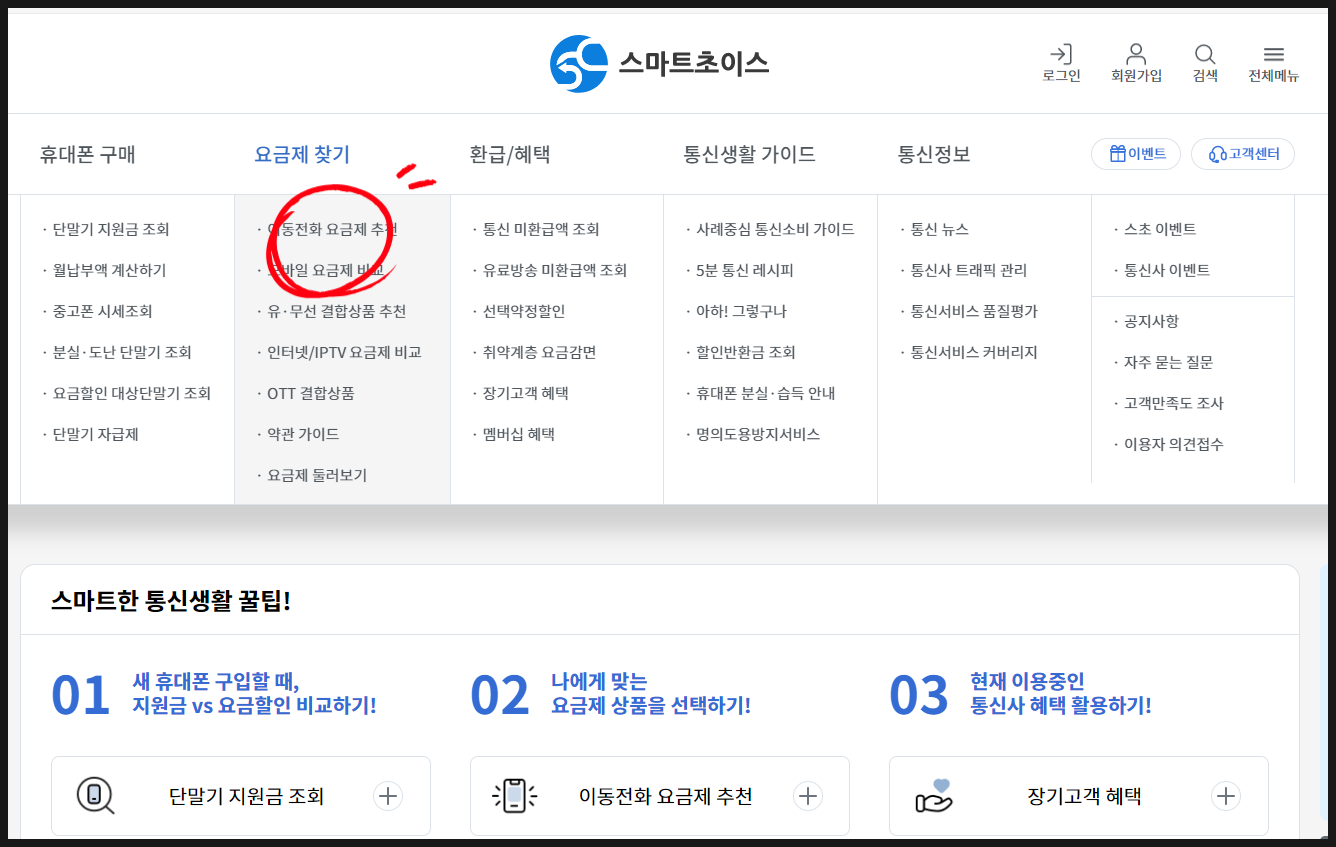 1. 스마트초이스에서 내게 맞는 요금제 찾기