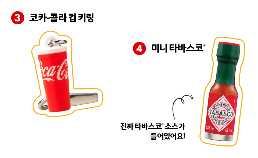 맥도날드의 맥스파이시 미니키링세트는 다양한 구성으로 팬들에게 즐거움을 선사합니다. 세트에는 맥스파이시 버거, 감자튀김, 콜라, 미니타바스코로 맥도날드의 인기 메뉴들이 미니어처 키링으로 포함되어 있습니다. 각 키링은 디테일이 살아있어 마치 실제 메뉴를 축소한 듯한 느낌을 줍니다.