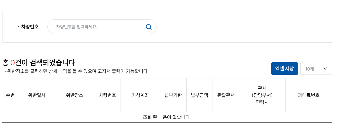 - 차량 정보 입력: 차량 번호와 소유주 정보를 입력하여 과태료 조회를 완료합니다.