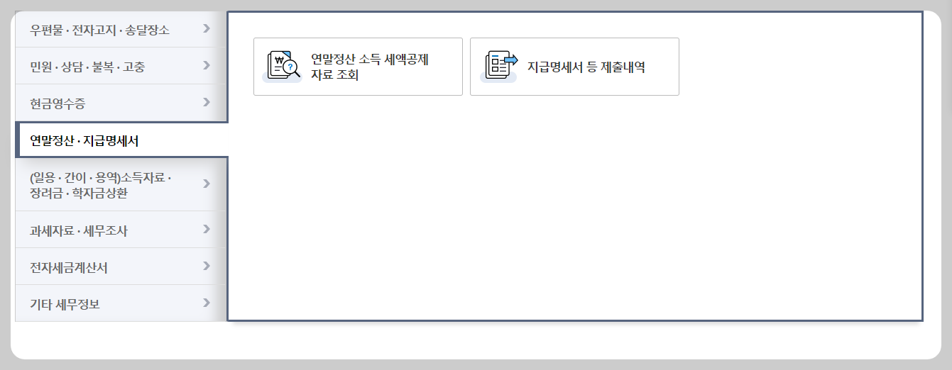 3. My홈택스 > 연말정산/지급명세서 > 지급명세서 등 제출내역