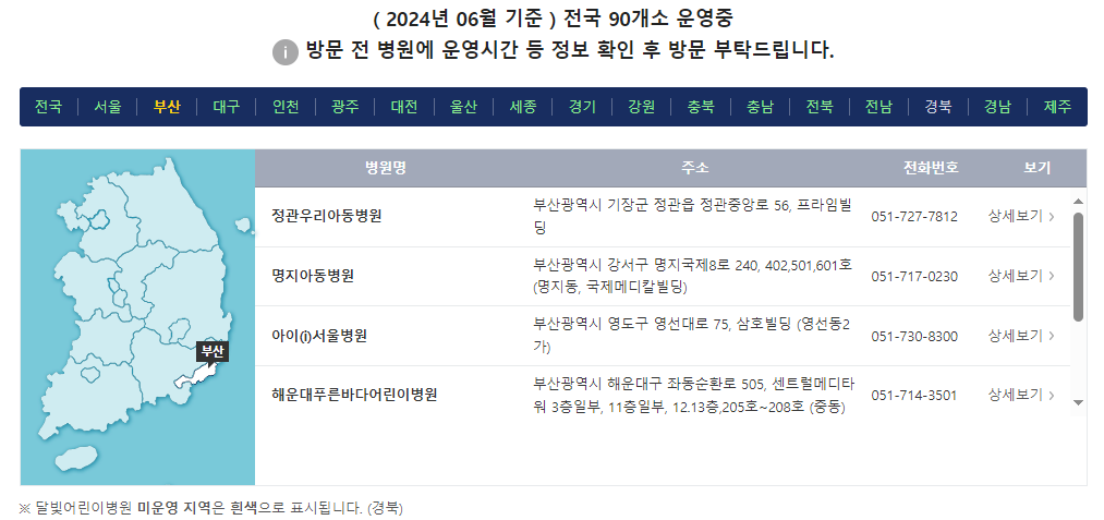 달빛어린이병원-응급의료포털에서는 병원의 주소, 전화번호는 물론 내 주변에 있는 병원도 검색가능하며 현재 진료가 간능한지도 조회가 가능합니다.