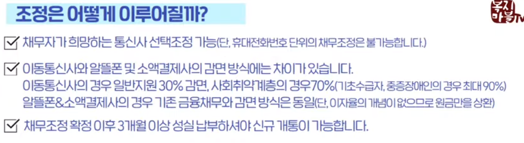 ✔알뜰폰 사업자 및 소액결제사-상환여력을 따져 0~70% 감면